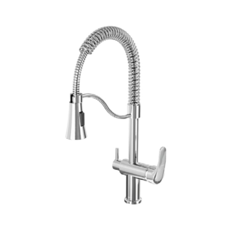 این شیر با علم فنری خود، امکان هدایت آسان آب به نقاط مختلف سینک را فراهم میآورد. علم فنری که بهراحتی کشیده میشود، به شما این امکان را میدهد که بهراحتی آب را به هر نقطهای از سینک هدایت کرده و از آن برای شستشوی ظروف بزرگ، پر کردن قابلمهها، شستشوی میوهها و سبزیجات یا حتی شستشوی سینک استفاده کنید. این ویژگی بهویژه در آشپزخانههایی با سینکهای عمیق یا فضاهای محدود بسیار کاربردی است و به شما این امکان را میدهد که از فضای خود بهرهبرداری بهینه داشته باشید.